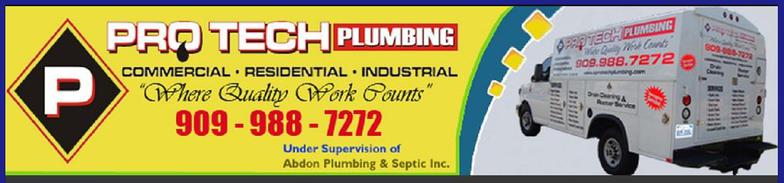 Pro Tech Plumbing PRO TECH PLUMBINGCOMMERCIAL • RESIDENTIAL • INDUSTRIAL“Where Quality Work Counts”909 – 988 – 7272 Under Supervision ofAbdon Plumbing & Septic Inc. Visit Site